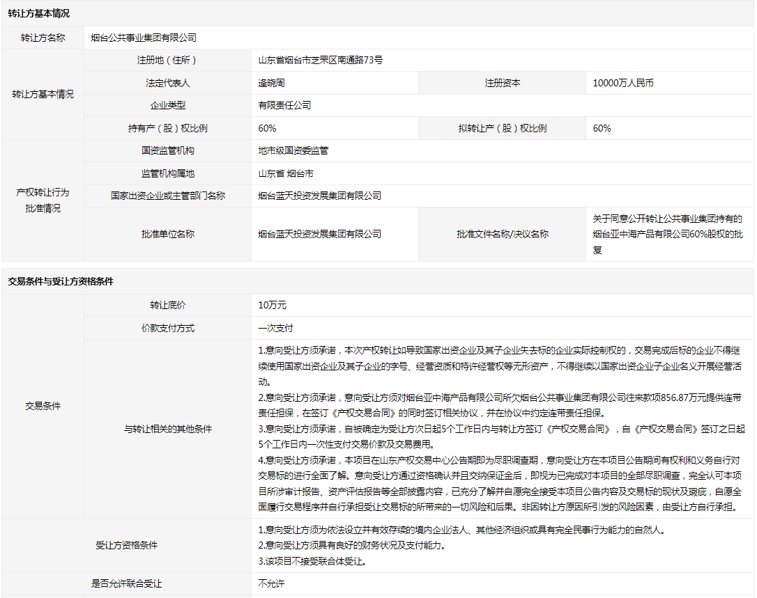 轉讓方:煙臺公共事業(yè)集團有限公司