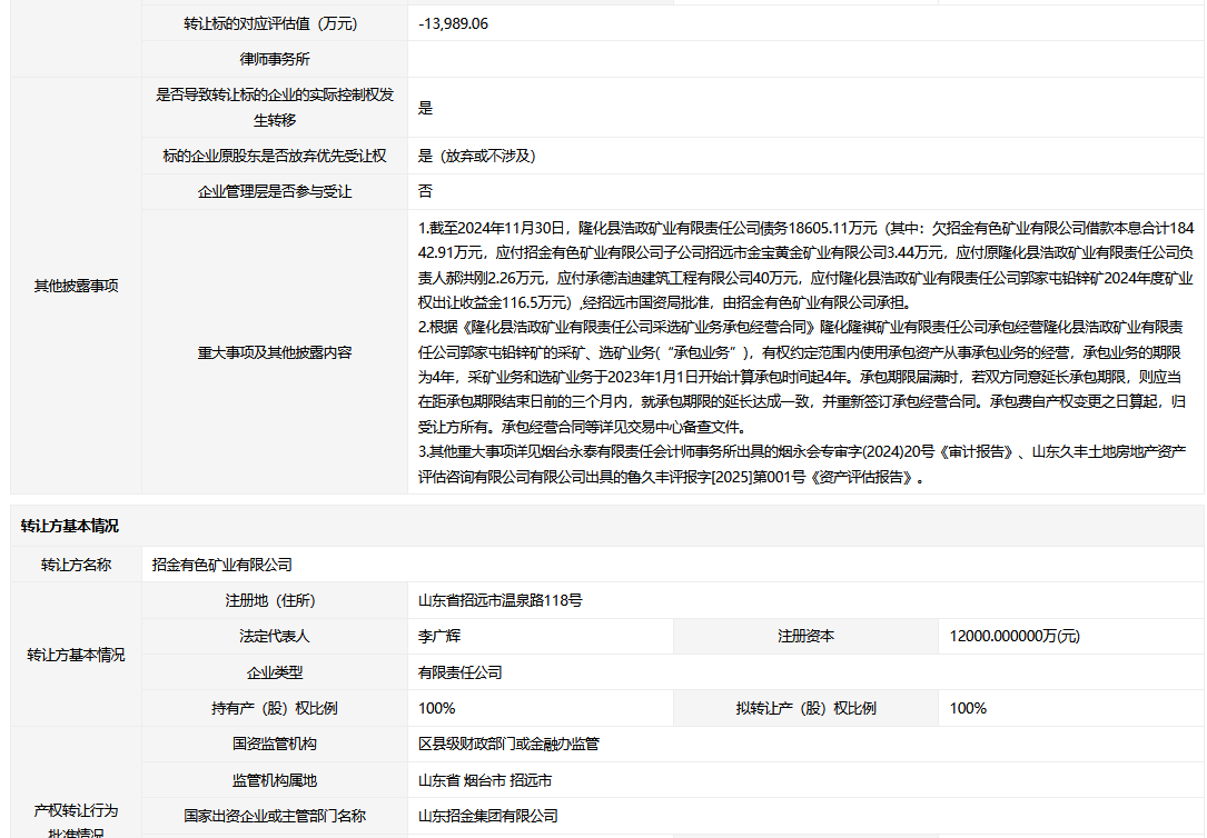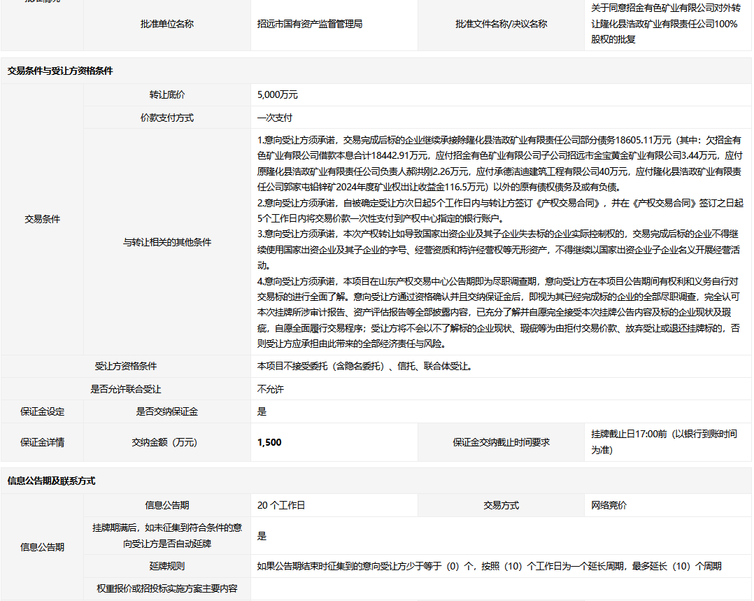• 轉(zhuǎn)讓方:招金有色礦業(yè)有限公司