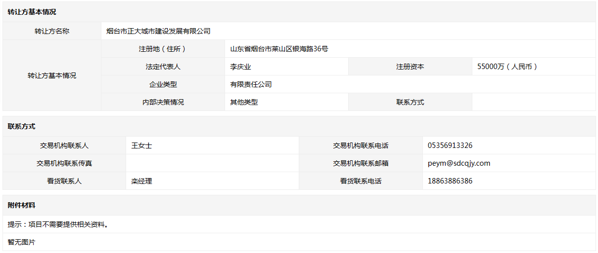 • 轉(zhuǎn)讓方:煙臺市正大城市建設(shè)發(fā)展有限公司