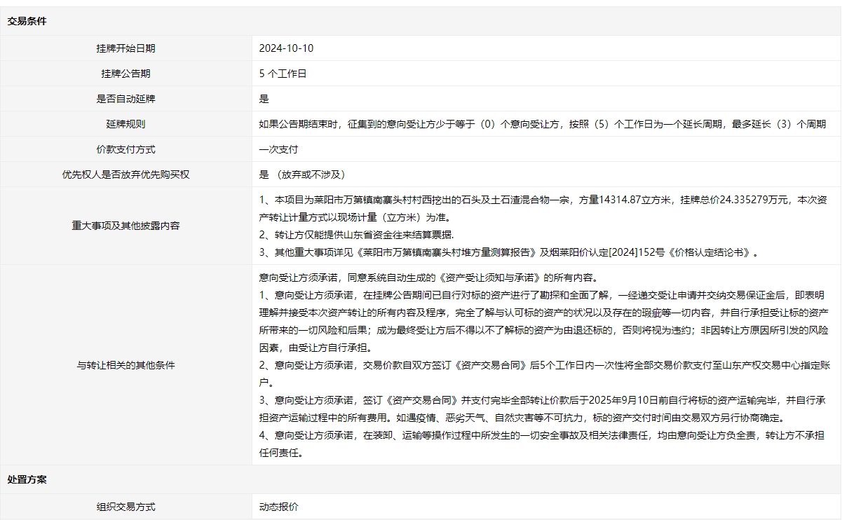 萊陽市萬第鎮(zhèn)南寨頭村石頭及土石渣混合物一宗