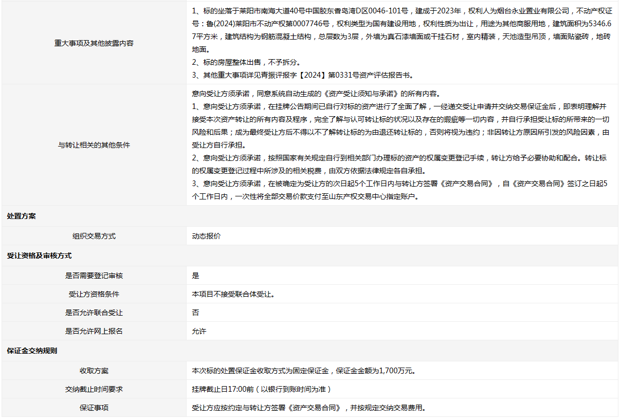 轉讓方:煙臺永業(yè)置業(yè)有限公司