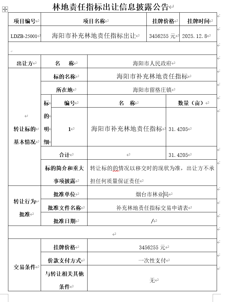 海陽市補充林地責任指標出讓