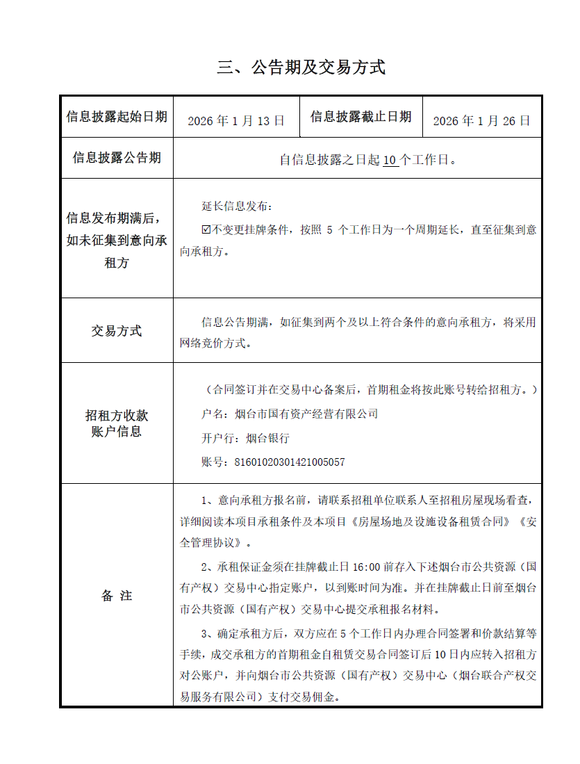 • 掛牌起止日期:2026年1月13日-2026年1月26日